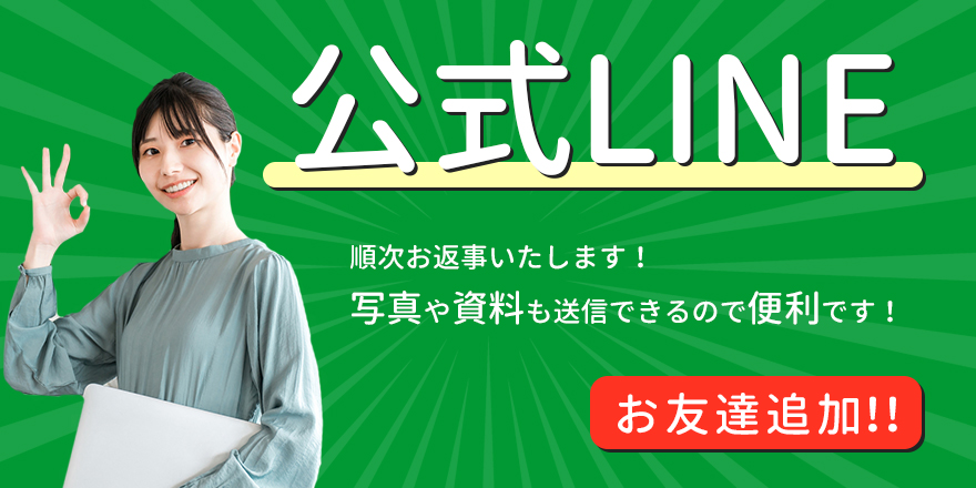お問い合わせは、資料のやり取りもできる公式LINEがおすすめです!お急ぎの方はホームぺージ上部に記載のお電話をご利用ください!