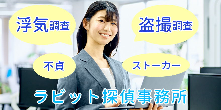 浮気調査、不貞調査、不倫調査、行動調査、ストーカー調査、盗撮調査、お部屋の盗聴盗撮調査、ブラック企業調査、所在調査(行方調査や人探し)、家出人調査、失踪人調査、結婚調査など様々な調査はラビット探偵事務所にお任せください!